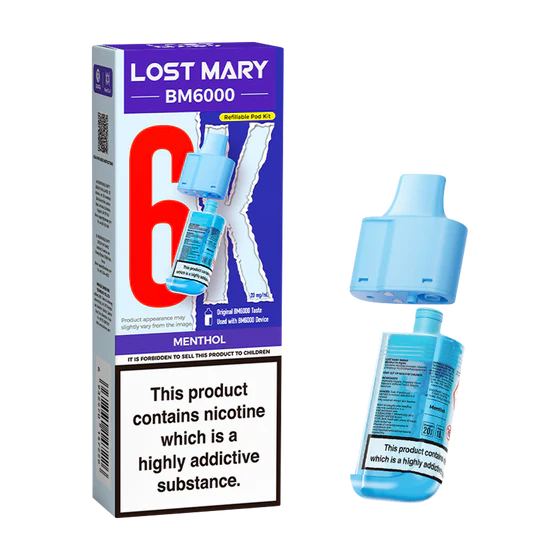 Available in a wide variety of flavours, the Lost Mary BM6000 refill range spans everything from juicy fruit blends and nostalgic candy notes to refreshing soda, cool menthol, and rich tobacco.